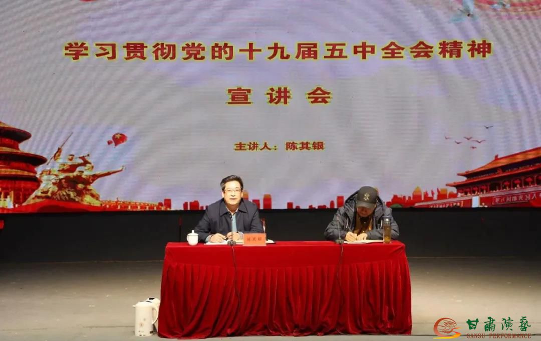 為深入學習貫徹黨的十九屆五中全會精神,切實把思想和行動統(tǒng)一到全會精神上來。12月22日上午,集團黨委書記、董事長陳其銀到甘肅演藝集團話劇院宣講黨的十九屆五中全會精神,宣講會議由院黨總支書記、院長劉寧主持,話劇院全體黨員參加會議。