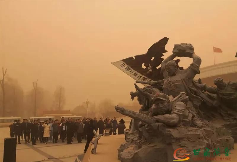 3月15日,一場(chǎng)十年不遇的特大沙塵暴席卷北方大部分地區(qū)。在旁人看來(lái)唯恐避之不及的沙塵暴,對(duì)于創(chuàng)排治沙題材的話劇《八步沙》創(chuàng)演團(tuán)隊(duì)來(lái)說(shuō),卻是一次難得的體驗(yàn)機(jī)會(huì)。為真實(shí)再現(xiàn)“時(shí)代楷模”——八步沙“六老漢”三代人治沙造林先進(jìn)群體矢志不渝、接續(xù)奮斗,實(shí)現(xiàn)人進(jìn)沙退、荒漠變綠洲的感人事跡,高水準(zhǔn)完成話劇《八步沙》的創(chuàng)排工作,3月15日至21日,省委宣傳部、省文化和旅游廳、甘肅演藝集團(tuán)組織《八步沙》創(chuàng)演團(tuán)隊(duì),由省委宣傳部二級(jí)巡視員封奎海、省文化和旅游廳副廳長(zhǎng)楊建仁帶隊(duì)赴武威市古浪縣八步沙林場(chǎng)開(kāi)展采風(fēng)和體驗(yàn)生活。當(dāng)日上午,省委宣傳部、省文旅廳的部分黨支部以及甘肅演藝集團(tuán)話劇院大型原創(chuàng)話劇《八步沙》劇組臨時(shí)黨支部的60余名黨員,在古浪戰(zhàn)役紀(jì)念館開(kāi)展了黨史教育和“接續(xù)奮斗,繼往開(kāi)來(lái),創(chuàng)作精品”主題黨日活動(dòng)。