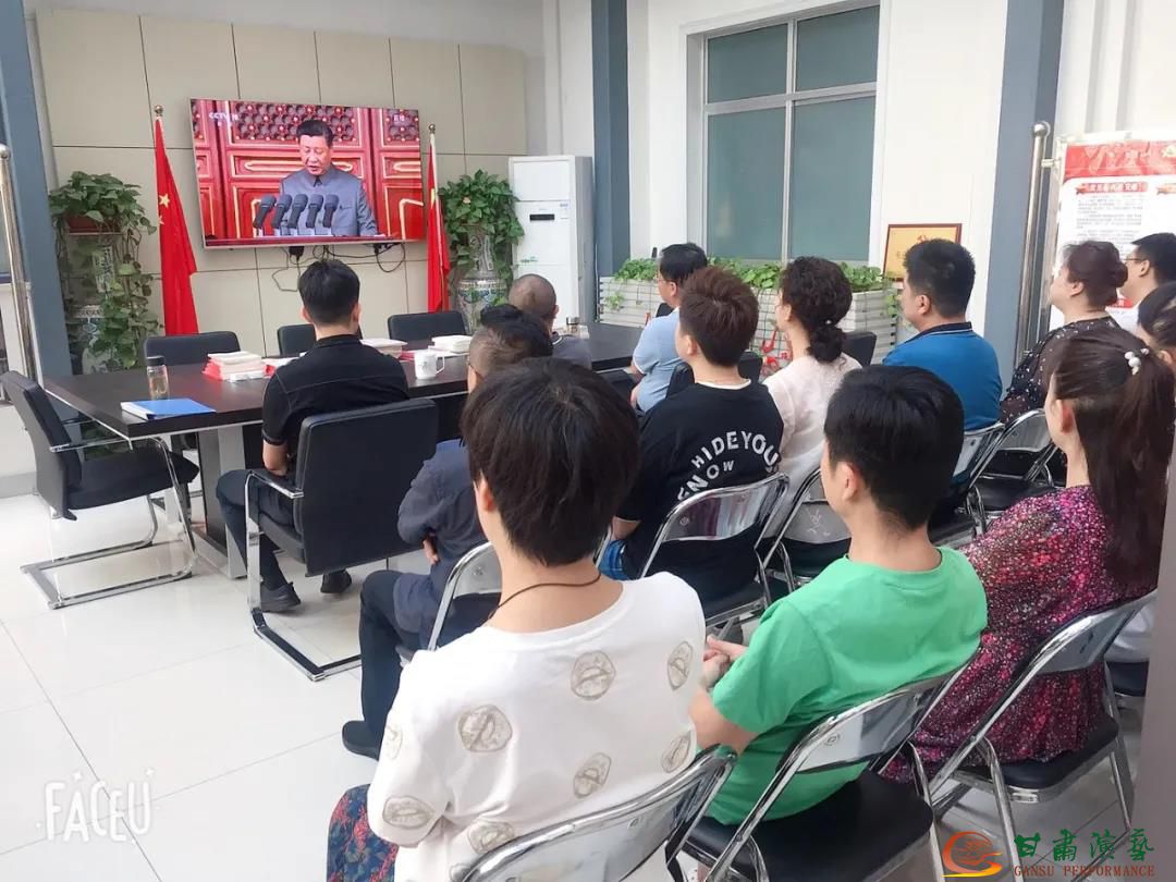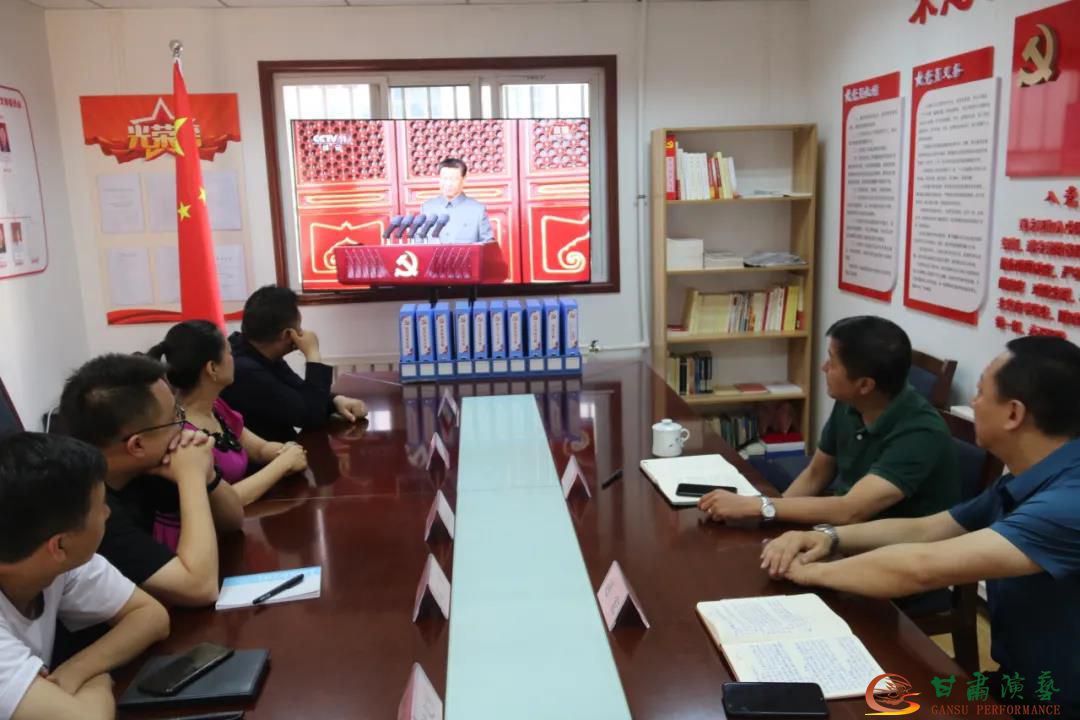 7月1日上午8時,慶祝中國共產(chǎn)黨成立100周年大會在北京天安門廣場隆重舉行。中共中央總書記、國家主席、中央軍委主席習(xí)近平出席大會并發(fā)表重要講話。甘肅演藝集團全體黨員干部職工集中觀看慶祝大會直播。