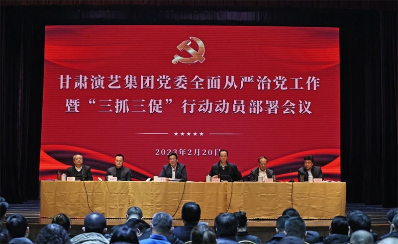 2023年2月20日下午,甘肅演藝集團(tuán)召開全面從嚴(yán)治黨工作暨“三抓三促”行動動員部署會。會議由集團(tuán)黨委書記、董事長陳其銀主持。集團(tuán)黨委委員、紀(jì)委書記、監(jiān)察專員張正權(quán)在會上作了題為《聚焦使命任務(wù) 忠誠履職盡責(zé) 以全面從嚴(yán)治黨新成效助力集團(tuán)高質(zhì)量發(fā)展》的黨風(fēng)廉政建設(shè)工作報告。集團(tuán)黨委班子成員、各部室及直屬各單位負(fù)責(zé)人、中層干部及職工代表共185人參加了會議。