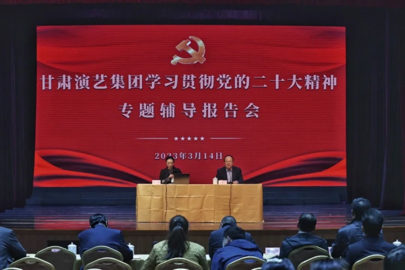 為深入學(xué)習(xí)貫徹黨的二十大精神,3月14日,甘肅演藝集團組織開展了學(xué)習(xí)貫徹黨的二十大精神專題輔導(dǎo)報告會。黨的二十大代表、歌舞劇院二級演員、民族舞劇《絲路花雨》第21位“英娘”扮演者康琦作專題輔導(dǎo)報告,甘肅演藝集團黨委委員、副總經(jīng)理王衛(wèi)平主持會議。