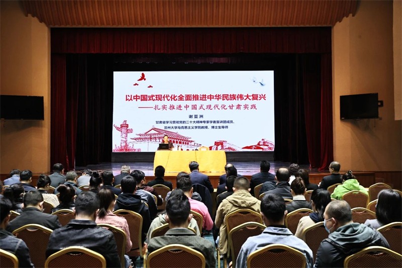 結(jié)業(yè)式前,蘭州大學(xué)馬克思主義學(xué)院教授謝亞洲圍繞“以中國式現(xiàn)代化全面推進(jìn)中華民族偉大復(fù)興——扎實(shí)推進(jìn)中國式現(xiàn)代化甘肅實(shí)踐”為主題作了專題輔導(dǎo)講座。