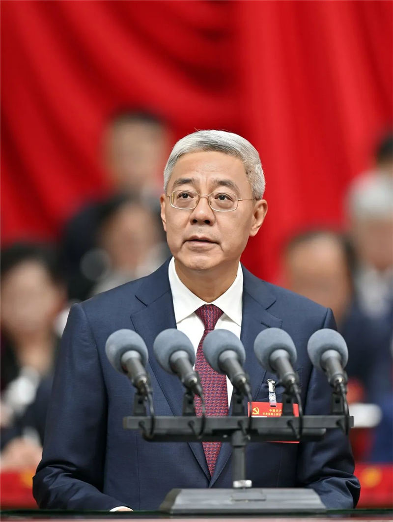 尹弘代表中國(guó)共產(chǎn)黨甘肅省第十三屆委員會(huì)向大會(huì)作報(bào)告