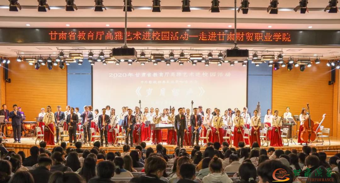 為將高雅藝術(shù)融入校園文化建設(shè),繁榮學(xué)校校園文化,提升師生藝術(shù)素養(yǎng),11月24日下午,2020年“甘肅省教育廳高雅藝術(shù)進校園”活動來到鐘靈毓秀的甘肅財貿(mào)職業(yè)學(xué)院,甘肅演藝集團歌舞劇院民族交響樂團的演奏家們用一臺精彩絕倫的中外影視經(jīng)典民族交響音樂會《歲月留聲》帶領(lǐng)全體師生共同感受民樂魅力,重溫經(jīng)典旋律。本次活動由甘肅省教育廳主辦,甘肅演藝集團承辦。