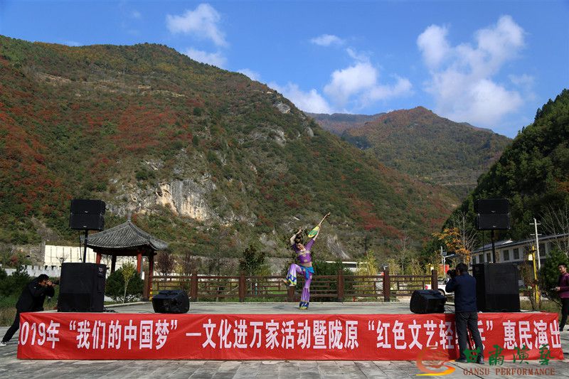 即將完成秋冬季節(jié)交替的美好11月,隴南徽縣大地多個(gè)鄉(xiāng)鎮(zhèn)喜氣洋洋,甘肅演藝集團(tuán)歌舞劇院2019年“我們的中國(guó)夢(mèng)”文化進(jìn)萬(wàn)家活動(dòng)暨隴原“紅色文藝輕騎兵”惠民演出一連幾日在此激情登場(chǎng),用深接地氣、緊貼民心、積極昂揚(yáng)的優(yōu)秀歌舞類綜合節(jié)目,謳歌祖國(guó)、贊美時(shí)代、暢想未來(lái),為當(dāng)?shù)鼗鶎尤罕娝蜕狭擞鋹傌S盛的文化大餐,將新時(shí)代文藝院團(tuán)“舉旗幟、聚民心、育新人、興文化、展形象”的光輝使命化為看得見(jiàn)的行動(dòng)、聽(tīng)得見(jiàn)的心聲。