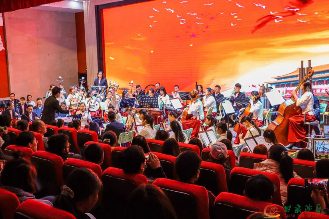 11月27日下午,甘肅演藝集團(tuán)歌舞劇院民族交響樂團(tuán)的演奏家們用一臺(tái)高水準(zhǔn)的中外影視經(jīng)典民族交響音樂會(huì)《歲月留聲》帶領(lǐng)甘肅衛(wèi)生職業(yè)學(xué)院的師生走進(jìn)民樂,回味經(jīng)典。整場(chǎng)音樂會(huì)分上下兩個(gè)篇章,上篇《中國(guó)影視經(jīng)典音樂》、下篇《國(guó)外影視經(jīng)典音樂》,演出由甘肅演藝集團(tuán)歌舞劇院青年指揮家張釗執(zhí)棒。在演奏家們忘我的演奏下,一首首耳熟能詳?shù)挠耙暯?jīng)典曲目仿佛打開了時(shí)光之門,讓師生們?nèi)绨V如醉,意猶未盡,不時(shí)爆發(fā)的掌聲更是表達(dá)著師生對(duì)國(guó)樂的熱愛。音樂會(huì)通過對(duì)經(jīng)典曲目的創(chuàng)造性加工與創(chuàng)新,使中華優(yōu)秀傳統(tǒng)文化歷久彌新。