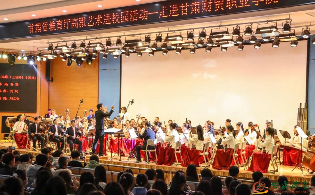 為將高雅藝術(shù)融入校園文化建設(shè),繁榮學(xué)校校園文化,提升師生藝術(shù)素養(yǎng),11月24日下午,2020年“甘肅省教育廳高雅藝術(shù)進(jìn)校園”活動(dòng)來(lái)到鐘靈毓秀的甘肅財(cái)貿(mào)職業(yè)學(xué)院,甘肅演藝集團(tuán)歌舞劇院民族交響樂(lè)團(tuán)的演奏家們用一臺(tái)精彩絕倫的中外影視經(jīng)典民族交響音樂(lè)會(huì)《歲月留聲》帶領(lǐng)全體師生共同感受民樂(lè)魅力,重溫經(jīng)典旋律。本次活動(dòng)由甘肅省教育廳主辦,甘肅演藝集團(tuán)承辦。