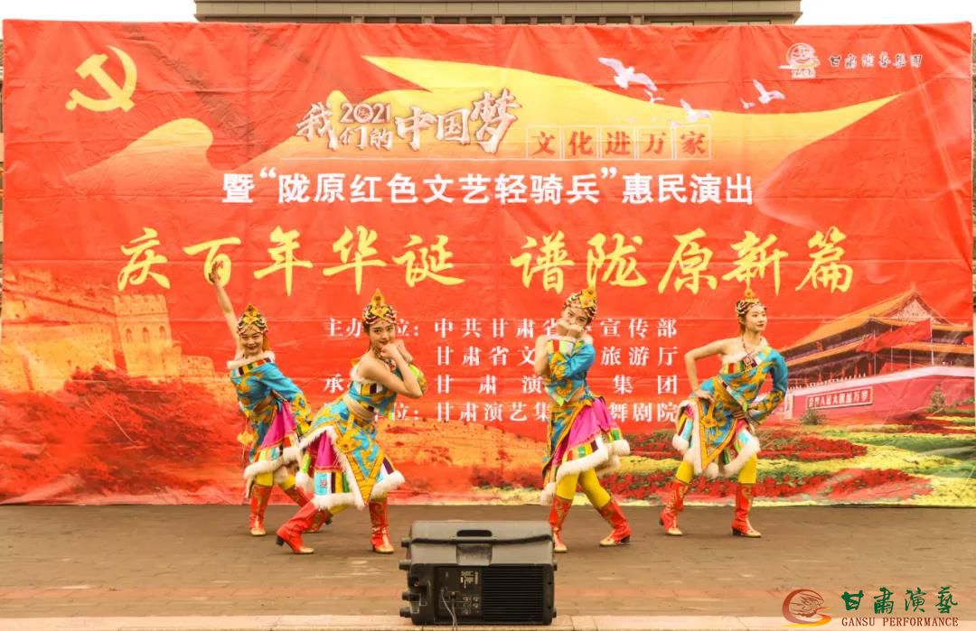 為慶祝中國(guó)共產(chǎn)黨成立 100周年、全面建成小康社會(huì)和開(kāi)啟全面建設(shè)社會(huì)主義現(xiàn)代化國(guó)家新征程。在這春天播種的美好季節(jié)里,甘肅演藝集團(tuán)歌舞劇院的演員們繼續(xù)將“慶百年華誕,譜隴原新篇”2021年“我們的中國(guó)夢(mèng)”——文化進(jìn)萬(wàn)家暨“隴原紅色文藝輕騎兵”惠民演出送到基層,本次活動(dòng)由中共甘肅省委宣傳部、甘肅省文化和旅游廳主辦,甘肅演藝集團(tuán)承辦。