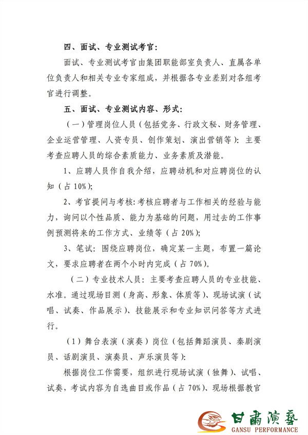 甘肅演藝集團(tuán)關(guān)于公布2020年公開招聘工作中參加面試、專業(yè)測試人員相關(guān)事宜的通知