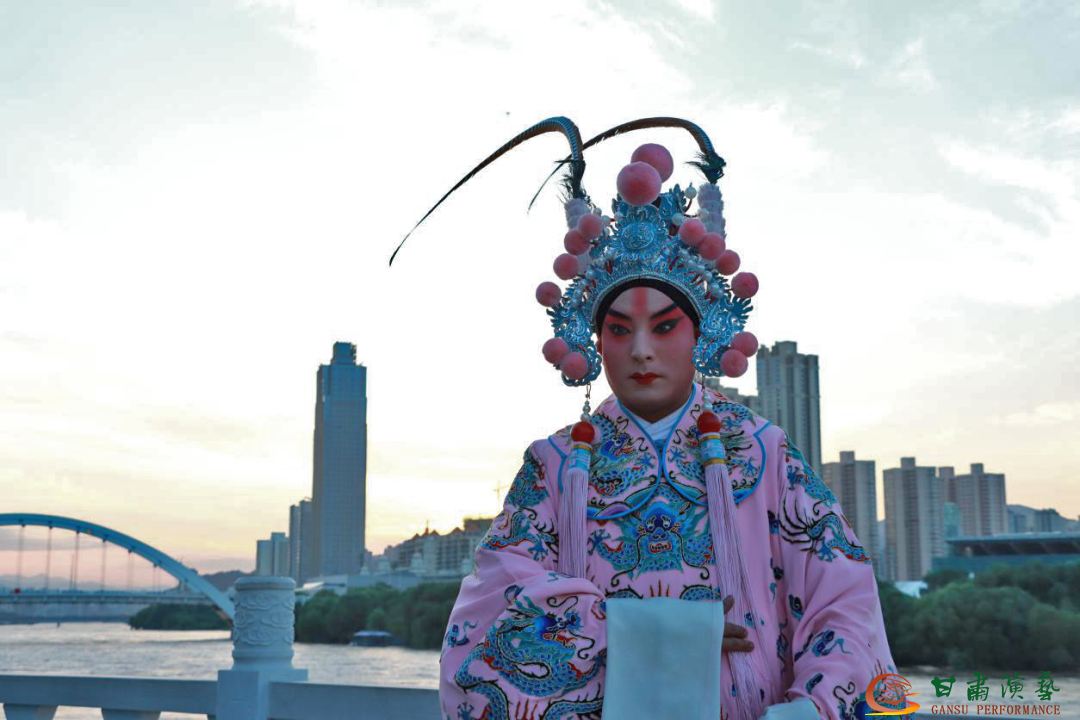 在“黃河之濱”觀景臺由甘肅演藝集團(tuán)秦腔藝術(shù)劇院的優(yōu)秀青年演員雷小均向觀眾表演了秦腔經(jīng)典劇目《小宴》選段。