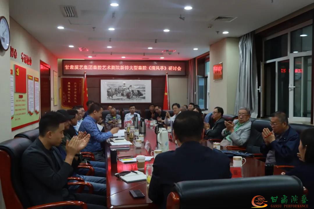 9月19日下午,新排大型秦腔《清風(fēng)亭》劇目研討會在甘肅演藝集團(tuán)召開。會議邀請我省文藝界有關(guān)專家學(xué)者、資深戲迷、集團(tuán)黨委班子成員,直屬各單位主要負(fù)責(zé)人和該劇主創(chuàng)人員、主要演員共計(jì)40人參會。