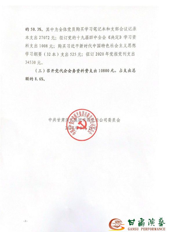 2019年度甘肅演藝集團(tuán)黨委管理黨費(fèi)收支情況