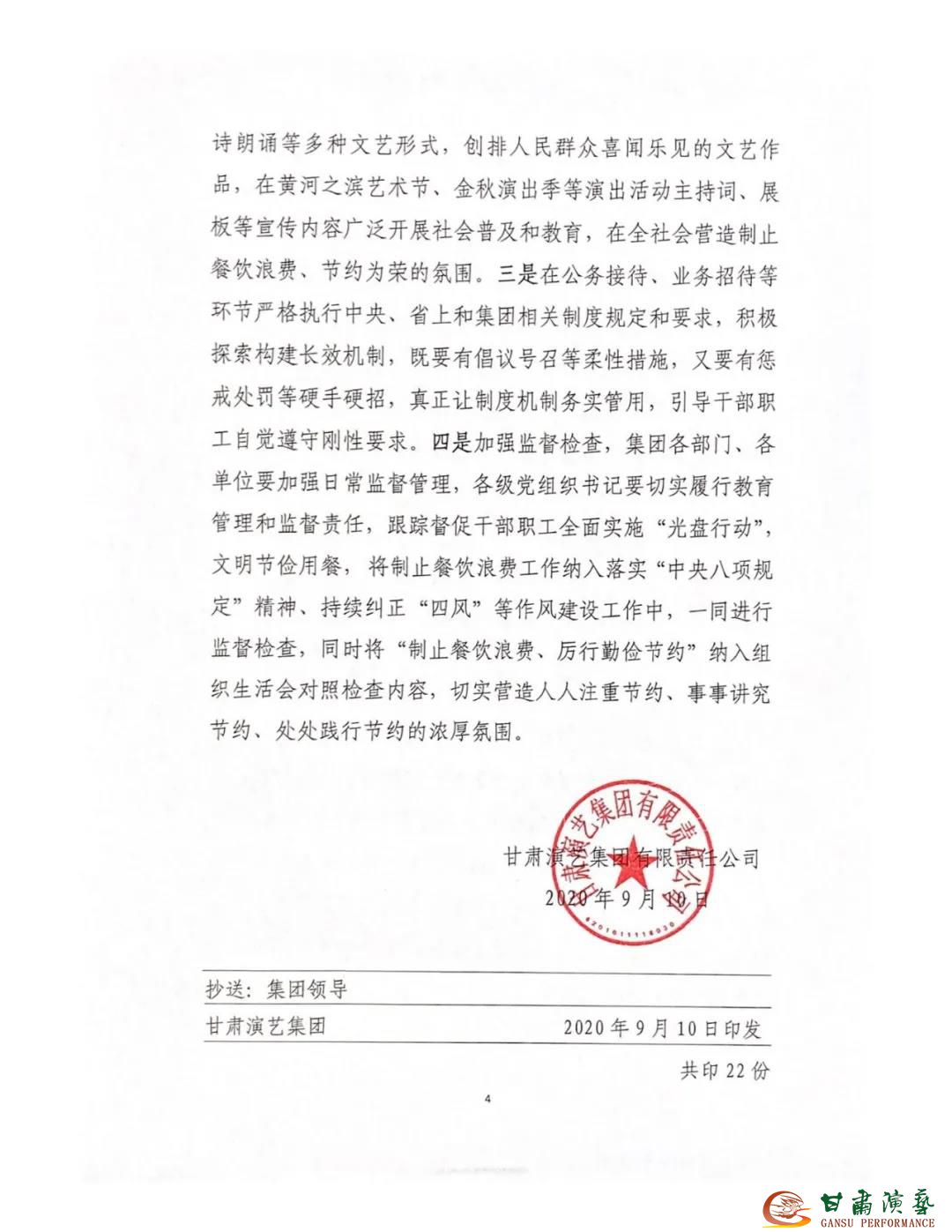 甘肅演藝集團(tuán)關(guān)于開展制止餐飲浪費(fèi)行為工作的通知