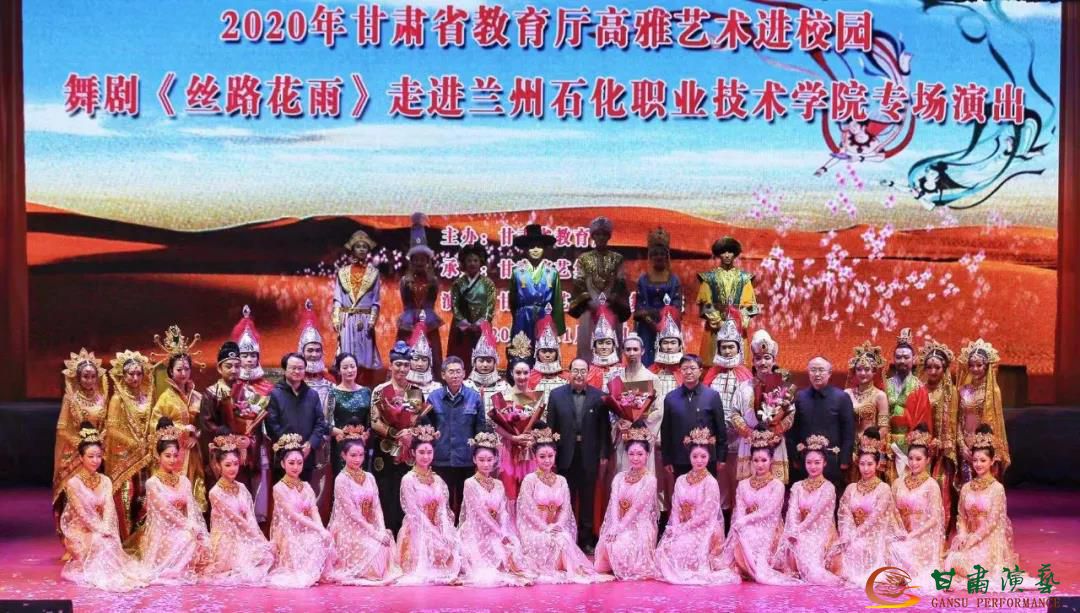 當(dāng)日晚上,甘肅演藝集團(tuán)歌舞劇院的舞蹈演員們用精湛的表演將被譽(yù)為“東方的《天鵝湖》”的中國(guó)經(jīng)典舞劇《絲路花雨》在蘭州石化職業(yè)技術(shù)學(xué)院完美再現(xiàn)。獨(dú)創(chuàng)的“S”形舞姿,親密無(wú)間的父女情結(jié),感人至深的中外人民友誼讓廣大師生既領(lǐng)略到敦煌文化博大精深,又感受到古絲綢之路的文化基因,在增強(qiáng)民族自豪感的同時(shí),堅(jiān)定了文化自信。精妙絕倫的表演扣人心弦,謝幕環(huán)節(jié)一浪高過(guò)一浪的掌聲和歡呼聲將氣氛推向最高潮。