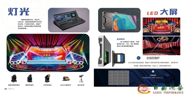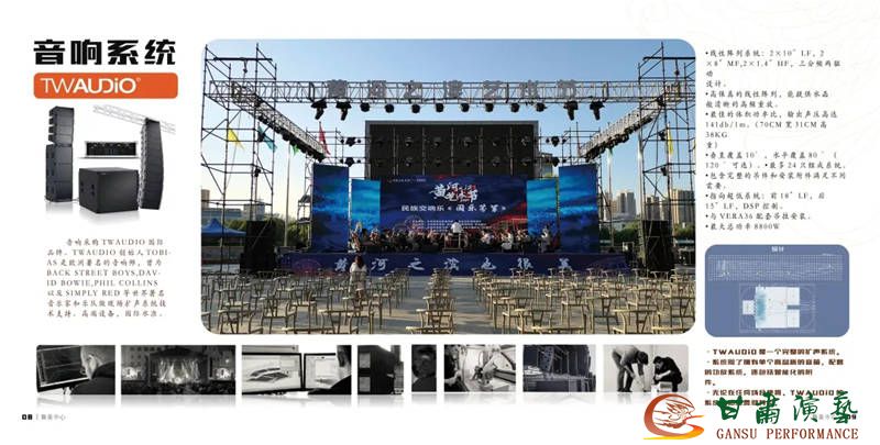 ?肅演藝集團(tuán)舞美中?專業(yè)從事舞臺戲劇( 舞美、燈光、?響、服裝、視頻)設(shè)計與制作。承接全省或全國各地?型?藝演出活動的舞美?程設(shè)計,創(chuàng)作體現(xiàn)及創(chuàng)意策劃等各類設(shè)計。及劇場、劇院舞臺新建、改造設(shè)計與?程、設(shè)備租賃(燈光、?響、激光投影)、舞美?才交流普及和倉儲為?體的舞美中?。