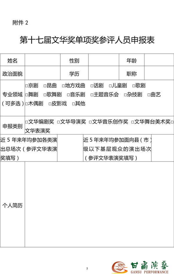 第十七屆文華獎(jiǎng)文華單項(xiàng)獎(jiǎng)參評(píng)人員申報(bào)表