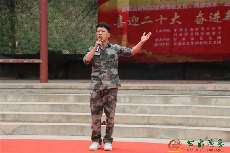 奮進新征程,建功新時代,在喜迎省第十四次黨代會的濃厚氛圍中,由省委宣傳部、省文化和旅游廳主辦,甘肅演藝集團承辦,來自敦煌藝術團的“文藝輕騎兵”走進城關區(qū)民兵訓練基地,與正在進行訓練的民兵們歡聚一堂、互動娛樂,為大家?guī)砹艘粓鼍实囊暵犑⒀纾蜕狭恕岸宋绻?jié)”的祝福,受到大家的熱烈歡迎和贊譽。