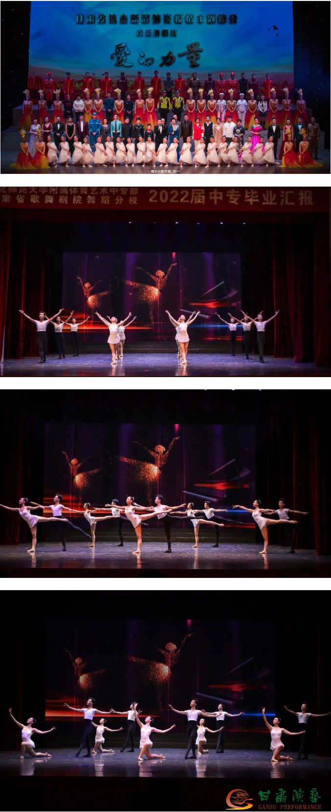 甘肅省歌舞劇院與西北師范大學附屬體育藝術(shù)中專部合作開辦的舞蹈中專學?,F(xiàn)為甘肅、西北地區(qū)實力較強的舞蹈教學基地。我院多年來創(chuàng)作演出了《絲路花雨》、《彩虹之路》、《相約千年——魅力絲路中國行》等經(jīng)典劇目,學生在校期間參加中國經(jīng)典舞劇《絲路花雨》及省內(nèi)各種大中小型文藝演出,特別是2008版《絲》劇參與北京奧運會、上海世博會、國慶60周年、首屆絲綢之路文博會、國慶70周年晚會《壯麗航程?甘肅再出發(fā)》、甘肅省慶祝中國共產(chǎn)黨成立100周年大型舞蹈音樂史詩《致敬百年》、甘肅省抗疫主題晚會《愛的力量》等重大慶典活動演出,全校學生都有參加,得到了省上領(lǐng)導及社會各界的認可,從而也激發(fā)了學校師生的榮譽感和成就感,也鍛煉和積累了學生在舞臺上表演的經(jīng)驗和本領(lǐng)。我校師資力量雄厚,教學經(jīng)驗豐富,教學成果斐然。建校至今,畢業(yè)十二屆學生,優(yōu)秀畢業(yè)生更是遍地開花,各省市大中專院校、中小學及文藝院團到處都有我們畢業(yè)生的身影。部分優(yōu)秀學生留院參加工作,成為我院舞蹈團的骨干力量,已為中國經(jīng)典舞劇《絲路花雨》培養(yǎng)了十多位主要角色。