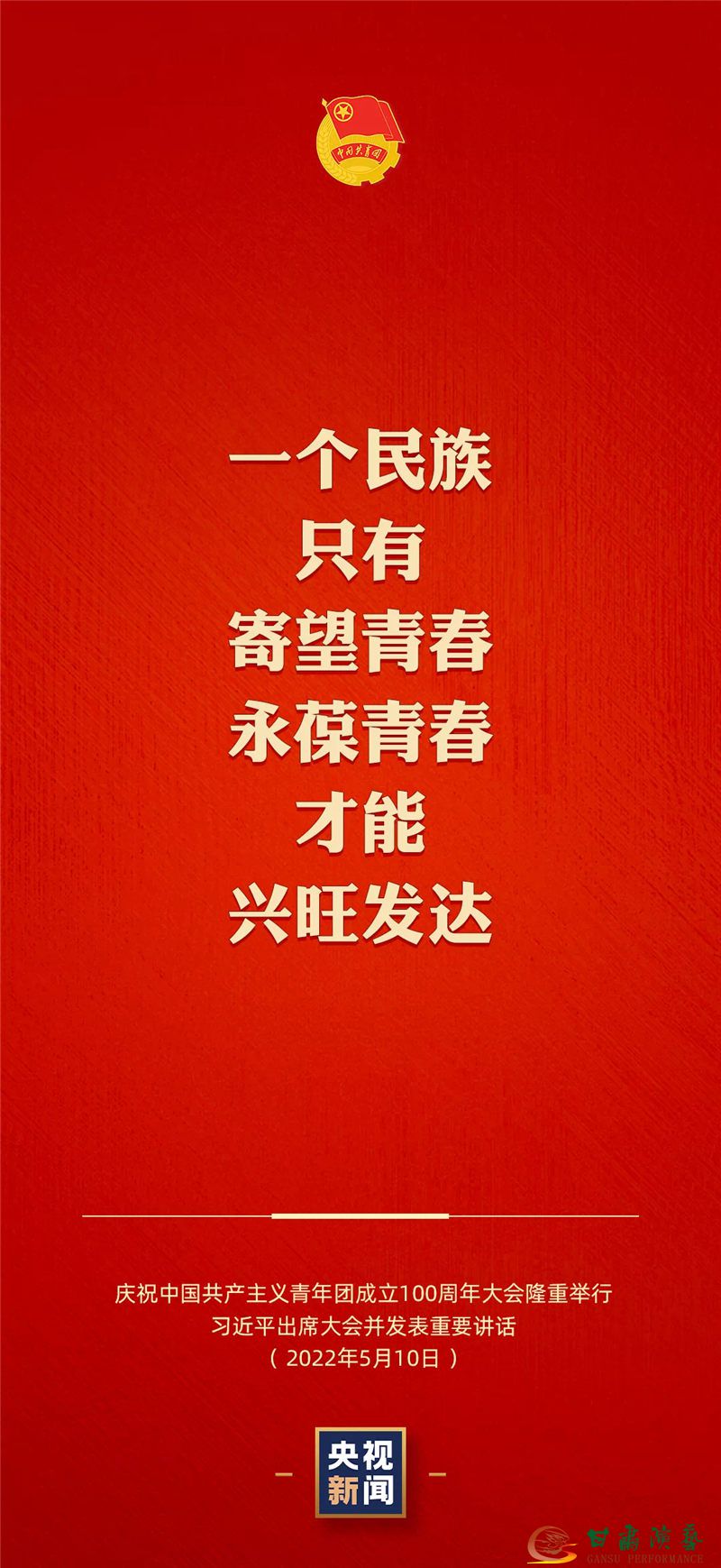 青春孕育無限希望,青年創(chuàng)造美好明天。一個民族只有寄望青春、永葆青春,才能興旺發(fā)達(dá)。