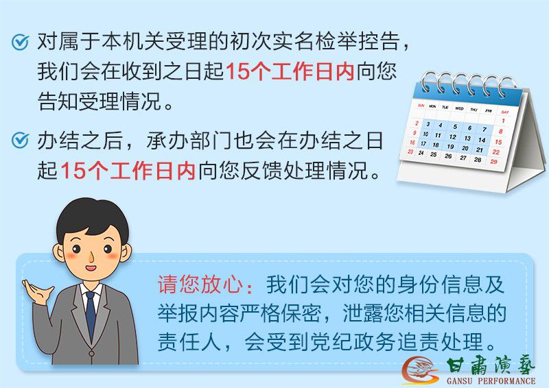 對屬于本機關(guān)受理的初次實名檢舉控告,我們會在收到之日起15個工作日內(nèi)向您告知受理情況。