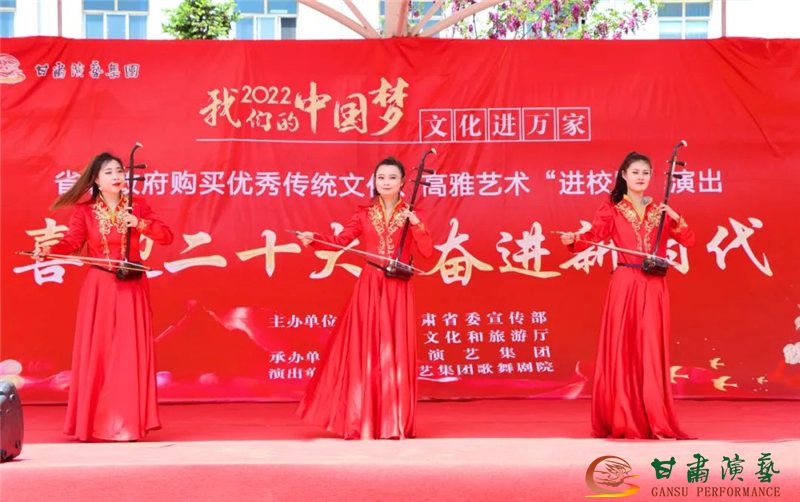 此次“我們的中國夢”——文化進(jìn)萬家暨紅色文藝輕騎兵文藝演出的最后一站將代表中華優(yōu)秀傳統(tǒng)文化的不同類別藝術(shù)作品送進(jìn)校園,為赴定西漳縣的演出畫上了圓滿的句號。本場演出拉近了舞臺藝術(shù)與青少年的距離,打開了一扇近距離感受舞臺藝術(shù)作品魅力的窗口,激發(fā)了師生對舞臺藝術(shù)文化的熱愛,對豐富校園文化生活、提高孩子們的藝術(shù)審美素養(yǎng)起到了促進(jìn)作用,也增進(jìn)了孩子們對中華民族傳統(tǒng)文化的認(rèn)同感,得到了學(xué)校領(lǐng)導(dǎo)和師生的廣泛贊譽(yù)和好評。未來甘肅演藝集團(tuán)歌舞劇院將一如既往承擔(dān)起“舉旗幟、聚民心、育新人、興文化、展形象”的使命任務(wù),創(chuàng)排更多思想性藝術(shù)性相統(tǒng)一的藝術(shù)作品,讓廣大人民群眾共享文化繁榮成果,培育和踐行社會主義核心價值觀,以實(shí)際行動迎接黨的二十大和省第十四次黨大會的勝利召開!