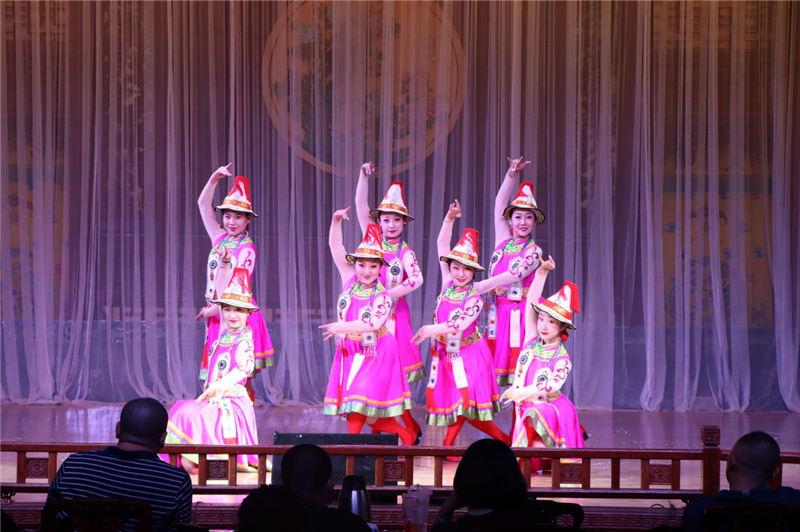 演出在舞蹈《星耀敦煌》中拉開序幕,緊接著女生獨唱《幸福中國一起走》、二胡重奏《高樓萬丈平地起》、相聲《說唱藝術(shù)》、七音樂隊《沒有共產(chǎn)黨就沒有新中國》、魔術(shù)《麗人行》、京劇《三家店》《智取威虎山》、小品《回家》、雜技《頂壇》《草帽》《鉆桶》、音樂快板《習總書記來咱布楞溝》等多種形式的節(jié)目繼而登場,讓觀眾目不暇接,最后歌伴舞《復興的力量》將演出氣氛推向高潮,演出在觀眾經(jīng)久不息的掌聲中圓滿謝幕。
