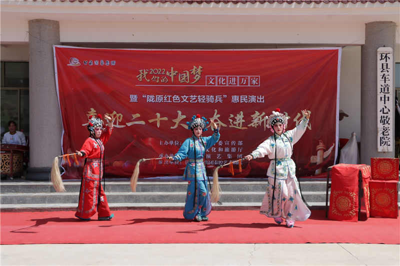 2022年6月8日,甘肅演藝集團2022“我們的中國夢”——文化進萬家暨隴原“紅色文藝輕騎兵”秦腔藝術(shù)劇院小分隊來到了幫扶點環(huán)縣車道鎮(zhèn),在駐村工作隊的積極銜接下和鎮(zhèn)黨委大力支持下,先是在車道鎮(zhèn)中心敬老院開展了“一行動一活動”關(guān)愛老人慰問演出活動,隨后在鎮(zhèn)中心廣場為當(dāng)?shù)厝罕妭儷I上了精彩紛呈的秦腔折子戲。