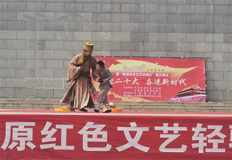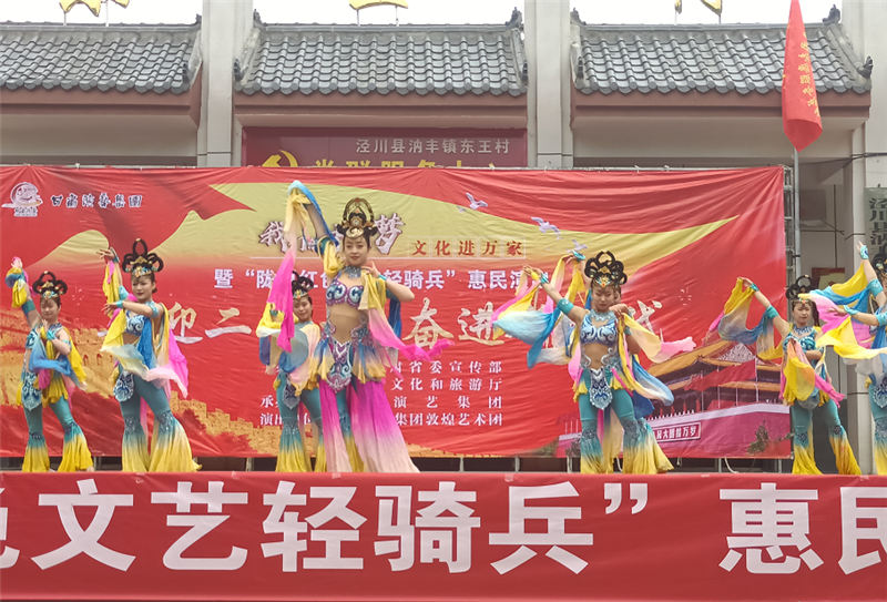 端午節(jié)前夕,由中共甘肅省委宣傳部、甘肅省文化和旅游廳主辦,甘肅演藝集團敦煌藝術(shù)團承辦的“我們的中國夢—文化進萬家”省級政府購買“進校園”“進校園”“隴原紅色文藝輕騎兵”惠民演出活動走進平?jīng)龅貐^(qū)。在靜寧縣、平?jīng)鍪小艽h,崇信縣的學校、軍營、鄉(xiāng)鎮(zhèn)文化廣場等地向基層人民及學校師生送上了一場豐厚的文化盛宴。
