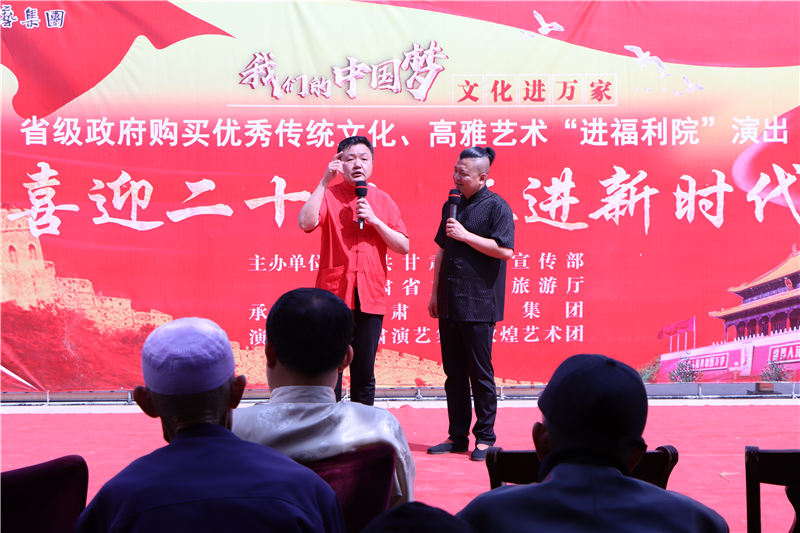 5月31日、6月1日,由中共甘肅省委宣傳部、甘肅省文化和旅游廳主辦、甘肅演藝集團(tuán)承辦、甘肅演藝集團(tuán)敦煌藝術(shù)團(tuán)演出的“我們的中國(guó)夢(mèng)”文化進(jìn)萬(wàn)家——2022省級(jí)政府購(gòu)買(mǎi)優(yōu)秀傳統(tǒng)文化、高雅藝術(shù)“進(jìn)福利院”惠民演出,走進(jìn)蘭州市七里河區(qū)半山民族敬老院、七里河區(qū)愛(ài)心托老所,用歌聲舞姿陪伴他們迎接即將到來(lái)的端午佳節(jié)。