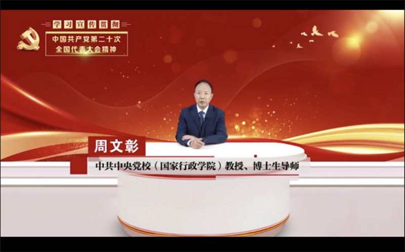 周文彰教授通過(guò)“五個(gè)牢牢把握”詳細(xì)解讀二十大報(bào)告的精髓,并在講解中提到,黨的二十大作為過(guò)去五年工作和新時(shí)代十年偉大變革的關(guān)鍵會(huì)議,進(jìn)一步指明了黨和國(guó)家事業(yè)的前進(jìn)方向,是我們黨團(tuán)結(jié)帶領(lǐng)全國(guó)各族人民在新時(shí)代新征程堅(jiān)持和發(fā)展中國(guó)特色社會(huì)主義的關(guān)鍵。黨課指出“五個(gè)牢牢把握”是對(duì)黨的二十大報(bào)告最精準(zhǔn)的解讀、最權(quán)威的輔導(dǎo),是貫徹落實(shí)黨的二十大精神的重要思想指引和行動(dòng)指南。周文彰教授講到:學(xué)習(xí)宣傳貫徹黨的二十大精神是當(dāng)前和今后一個(gè)時(shí)期全黨全國(guó)的首要政治任務(wù)和中心,應(yīng)當(dāng)牢牢把握過(guò)去5年工作和新時(shí)代10年偉大變革的重大意義,深刻領(lǐng)悟“兩個(gè)確立”的決定性意義,牢記“三個(gè)務(wù)必”,牢記“國(guó)之大者”,自覺(jué)在思想上政治上行動(dòng)上同以習(xí)近平同志為核心的黨中央保持高度一致。自信自強(qiáng)、守正創(chuàng)新,踔厲奮發(fā)、勇毅前行,為全面建設(shè)社會(huì)主義現(xiàn)代化國(guó)家,全面推進(jìn)中華民族偉大復(fù)興而團(tuán)結(jié)奮斗。