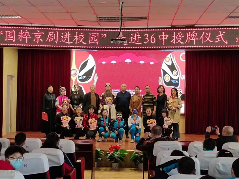 敦煌藝術(shù)團(tuán)黨總支書記、團(tuán)長(zhǎng)許蕊代表敦煌藝術(shù)團(tuán)向全體師生表示,戲曲是我國(guó)傳統(tǒng)文化的瑰寶,是無(wú)形的文化遺產(chǎn),戲曲以優(yōu)美動(dòng)聽的唱腔,豐富多彩的表演,維妙維俏的人物形象,跌宕起伏的故事情節(jié)打動(dòng)人心。三十六中與敦煌藝術(shù)團(tuán)共建“藝術(shù)教育實(shí)踐基地”,能夠培養(yǎng)學(xué)生對(duì)京劇藝術(shù)的興趣,了解京劇藝術(shù)知識(shí),希望同學(xué)們能夠愛上京劇,愛上我們的優(yōu)秀中華傳統(tǒng)文化。