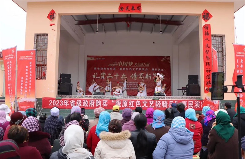 由中共甘肅省委宣傳部、甘肅省文化和旅游廳主辦,甘肅演藝集團(tuán)承辦,甘肅演藝集團(tuán)歌舞劇院演繹的2023年“我們的中國夢”——文化進(jìn)萬家暨隴原紅色文藝輕騎兵演出活動精彩繼續(xù)。4月2日至4日,三天六場演出,讓白銀市平川區(qū)寶積鎮(zhèn)、共和鎮(zhèn)、水泉鎮(zhèn),白銀市靖遠(yuǎn)縣東灣鎮(zhèn)楊柳村、大蘆鎮(zhèn)大蘆村、烏蘭鎮(zhèn)營房村的鄉(xiāng)親們沉浸式體驗了新時代文藝繁榮的累累碩果,一場場家門口的“文化盛宴”獲得了父老鄉(xiāng)親們的一致好評。