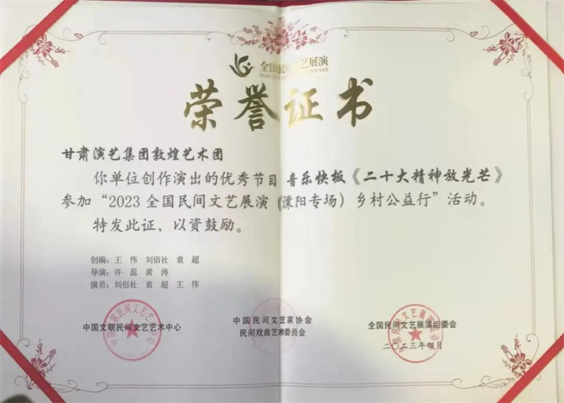 甘肅演藝集團敦煌藝術(shù)團有幸受邀參加此次展演,本次展演由中國民間文藝家協(xié)會、中國文聯(lián)民間文藝藝術(shù)中心、江蘇省民間文藝家協(xié)會、溧陽市人民政府主辦。中國民協(xié)民間戲曲藝術(shù)委員會、中國溧陽市委宣傳部、溧陽市融媒體中心(傳媒集團)承辦。