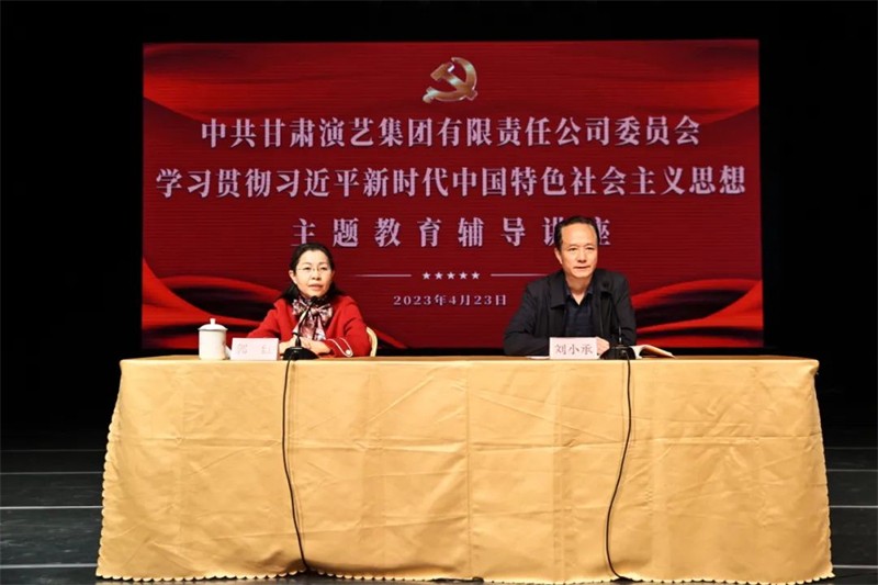 4月23日下午,甘肅演藝集團(tuán)學(xué)習(xí)貫徹習(xí)近平新時(shí)代中國(guó)特色社會(huì)主義思想主題教育讀書班舉行第一次專題輔導(dǎo),邀請(qǐng)?zhí)m州市委黨校(蘭州市行政學(xué)院)副校(院)長(zhǎng)、副教授郭紅,圍繞“習(xí)近平新時(shí)代中國(guó)特色社會(huì)主義思想概論”做專題輔導(dǎo)報(bào)告。集團(tuán)黨委副書記、總經(jīng)理劉小承主持輔導(dǎo)報(bào)告會(huì)。集團(tuán)黨委領(lǐng)導(dǎo)班子成員,職能部室負(fù)責(zé)人,直屬單位班子成員,集團(tuán)機(jī)關(guān)及直屬單位全體黨員參加會(huì)議。