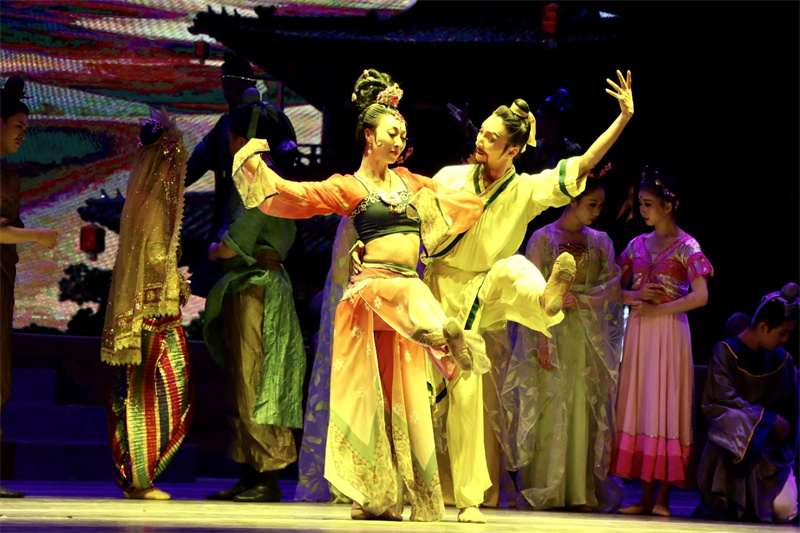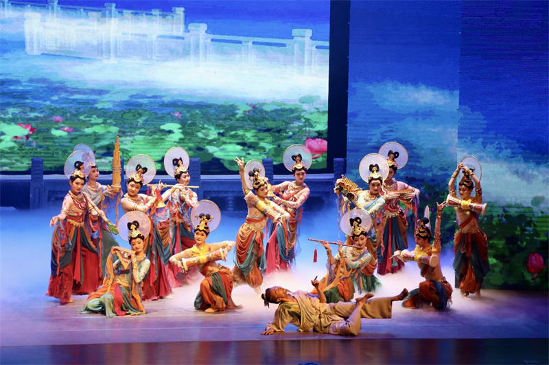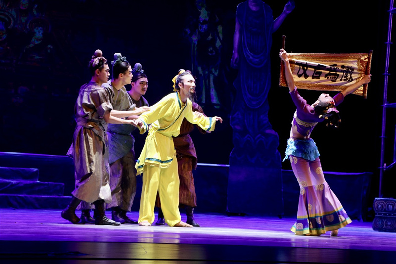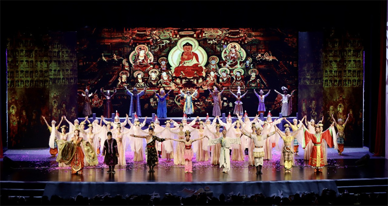 甘肅演藝集團(tuán)歌舞劇院的藝術(shù)家們,讓現(xiàn)場(chǎng)觀眾走進(jìn)古絲綢之路的歷史畫卷中,大氣唯美的布景、絢麗多彩的舞蹈、極富張力的演繹、跌宕起伏的情節(jié),讓古老恢弘的敦煌文化穿越歷史時(shí)空,煥發(fā)獨(dú)特魅力印入人心,令現(xiàn)場(chǎng)觀眾沉醉其中,如癡如醉。挖掘絲路文化內(nèi)涵,展現(xiàn)敦煌文化魅力是甘肅演藝集團(tuán)歌舞劇院一直的藝術(shù)堅(jiān)守,作為“敦煌舞”藝術(shù)流派的創(chuàng)始人,我們將一如既往初心不改,發(fā)揮所長(zhǎng)弘揚(yáng)和傳承中華優(yōu)秀傳統(tǒng)文化,結(jié)合學(xué)習(xí)貫徹習(xí)近平新時(shí)代中國(guó)特色社會(huì)主義思想主題教育和“三抓三促”行動(dòng),廣泛開(kāi)展惠民演出,把人民群眾滿不滿意作為檢驗(yàn)藝術(shù)工作成績(jī)的標(biāo)準(zhǔn),不斷豐富人民精神文化需求,用優(yōu)秀作品凝聚奮進(jìn)力量,為譜寫中國(guó)式現(xiàn)代化甘肅實(shí)踐嶄新篇章貢獻(xiàn)文藝力量!