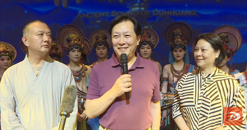 7月19日下午,著名表演藝術(shù)家唐國強(qiáng)一行和酒泉市委常委、敦煌市委書記石琳,敦煌市副市長原娜及市民游客一同觀看了全球首部洞窟式沉浸體驗(yàn)劇《樂動敦煌》。