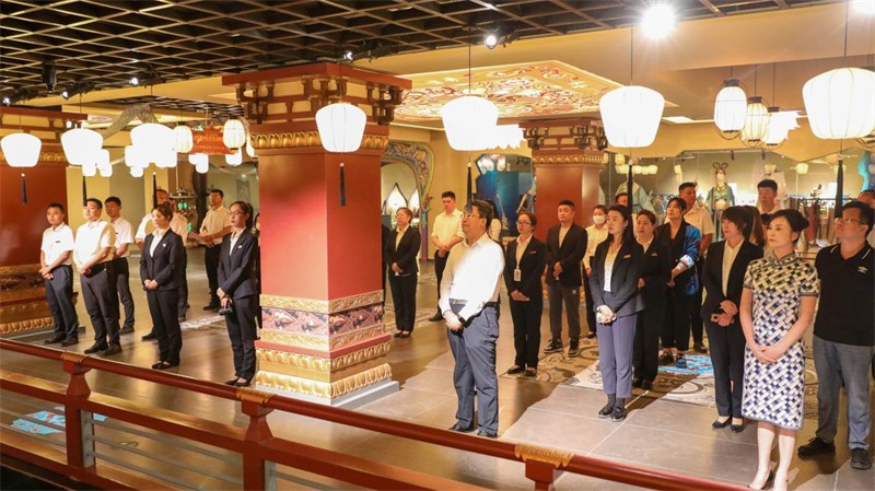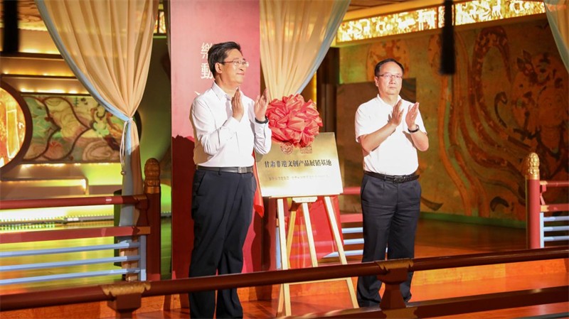 9月5日,由甘肅省非物質(zhì)文化遺產(chǎn)保護(hù)中心、甘肅省國(guó)際文化交流中心與甘肅演藝集團(tuán)共建的甘肅非遺文創(chuàng)產(chǎn)品展銷基地、文化交流基地揭牌儀式在“樂動(dòng)敦煌-文旅產(chǎn)業(yè)綜合體”舉行。甘肅演藝集團(tuán)黨委書記、董事長(zhǎng)陳其銀,甘肅演藝集團(tuán)黨委副書記、總經(jīng)理劉小承,甘肅省文化和旅游廳黨組成員、副廳長(zhǎng)呂興來,甘肅省非遺保護(hù)中心副主任魏旭斌,甘肅省國(guó)際文化交流中心主任王曉琴參加了揭牌儀式。