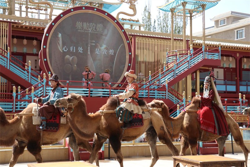 甘肅演藝集團(tuán)近年來積極響應(yīng)國(guó)家“一帶一路”倡議,廣泛開展國(guó)內(nèi)外文化交流,創(chuàng)排演出了一大批展示中國(guó)優(yōu)秀傳統(tǒng)文化和甘肅文化特色的優(yōu)秀作品,充分發(fā)揮文化交流主力軍作用,致力于通過“講好中國(guó)故事,傳播好中國(guó)聲音”,將中華民族優(yōu)秀文化推得更廣走得更遠(yuǎn),擴(kuò)大朋友圈,畫出更大同心圓。為弘揚(yáng)中華優(yōu)秀傳統(tǒng)文化,推動(dòng)敦煌文化發(fā)揚(yáng)光大,打造了大型文旅產(chǎn)業(yè)綜合體項(xiàng)目樂動(dòng)敦煌。甘肅省國(guó)際文化交流中心文化交流基地落地樂動(dòng)敦煌—文旅產(chǎn)業(yè)綜合體,將依托活化的敦煌古樂器、古樂譜研發(fā)成果,堅(jiān)持讓敦煌文化走出去、研學(xué)培訓(xùn)引進(jìn)來,不斷加大宣傳推介敦煌文化的力度,開展敦煌文化推介和招培招學(xué)活動(dòng),吸引國(guó)內(nèi)外研學(xué)團(tuán)隊(duì)赴樂動(dòng)敦煌開展研學(xué),推動(dòng)文旅融合和研學(xué)新業(yè)態(tài)發(fā)展,為甘肅旅游經(jīng)濟(jì)發(fā)展和文化交流起到引領(lǐng)帶動(dòng)作用?;顒?dòng)現(xiàn)場(chǎng),還舉行了“甘肅非遺文創(chuàng)產(chǎn)品展銷基地”與“甘肅省國(guó)際文化交流中心文化交流基地”揭牌儀式。