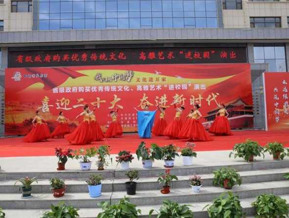 端午節(jié)前夕,由中共甘肅省委宣傳部、甘肅省文化和旅游廳主辦,甘肅演藝集團(tuán)敦煌藝術(shù)團(tuán)承辦的“我們的中國(guó)夢(mèng)—文化進(jìn)萬(wàn)家”省級(jí)政府購(gòu)買“進(jìn)校園”“進(jìn)校園”“隴原紅色文藝輕騎兵”惠民演出活動(dòng)走進(jìn)平?jīng)龅貐^(qū)。在靜寧