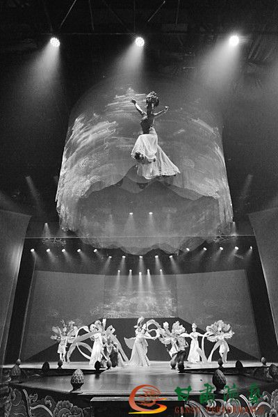 我最喜愛的,是白歆與公主之間愛情故事的結(jié)局:伴隨著敦煌古樂的大美之音,公主再現(xiàn)了婀娜多姿的飛天盛景,白歆仿佛看到了苦苦尋覓的“美音鳥”。他回到靜謐的月牙泉邊,對著一輪明月,實(shí)現(xiàn)了自己音樂藝術(shù)的升華。唯美的月牙泉風(fēng)景讓我覺得仿佛置身沙漠之中,零距離感受到了敦煌樂舞的藝術(shù)感召。
