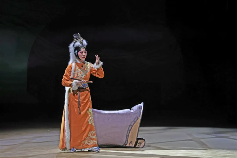 然而,這一切都需要通過舞臺人物的行為細節(jié)來表現(xiàn),進而推動人物性格的向前發(fā)展。觀眾可以從蔡文姬與左賢王一次次對互相峙或互相容忍的戲劇情境中,一點一滴地累積起對他們關(guān)系變化的感受。諸如蔡文姬對左賢王舉止做派的難以忍受,或驚詫他竟然以胡笳附和自己的琴聲,或惱怒于左賢王的性格的飄忽不定……乃至她誕下孩兒以后,家庭人倫關(guān)系的緊密和慰藉,這一磚一瓦的壘筑,成為塑造蔡文姬形象和性格的堅實支撐。