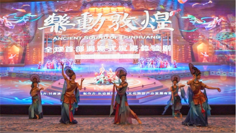 大會現(xiàn)場,樂動敦煌公司相關負責人就樂動敦煌-文旅產(chǎn)業(yè)綜合體項目進行推介,詳細介紹了規(guī)劃布局、投資建設情況、特色亮點、主要產(chǎn)品及合作模式。演員代表們表演了全球首部洞窟式沉浸體驗劇《樂動敦煌》的精彩片段,掀起現(xiàn)場活動高潮。