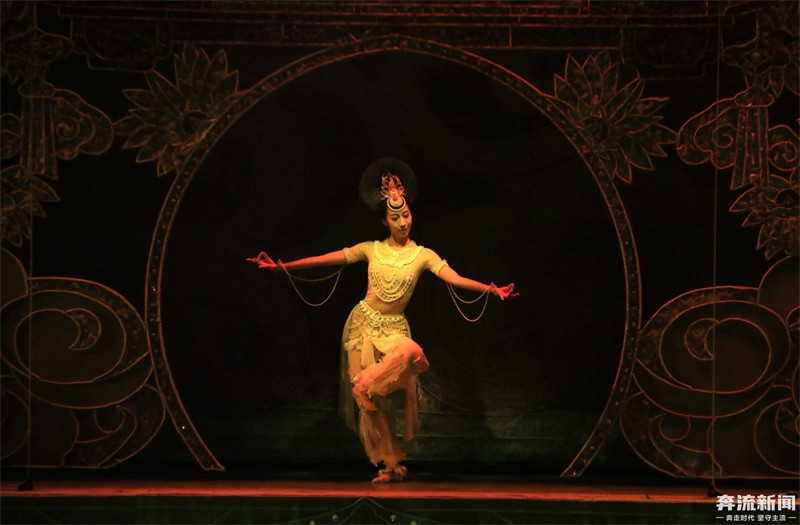 5月25日晚,演員在全球首部洞窟式沉浸體驗(yàn)劇《樂(lè)動(dòng)敦煌》中表演。