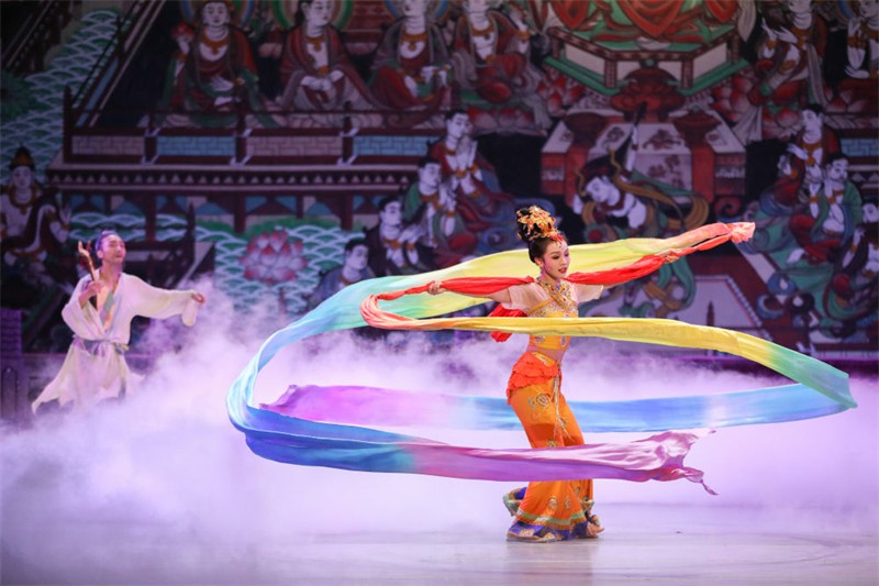 8月23日,演員在甘肅黃河劇院表演《絲路花雨》。新華社記者 馬希平 攝