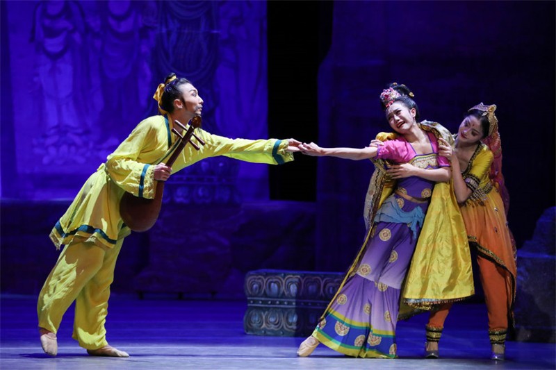 近日,中國經(jīng)典舞劇《絲路花雨》在甘肅省蘭州市的甘肅黃河劇院常態(tài)化駐場演出,甘肅省歌舞劇院的演員們演繹了優(yōu)美動(dòng)人的敦煌壁畫舞姿。 《絲路花雨》以絲綢之路和敦煌壁畫為素材,再現(xiàn)敦煌文化的博大精深和古絲綢之路繁榮昌盛的輝煌景象。該舞劇自1979年問世以來,足跡遍布40多個(gè)國家和地區(qū)。
