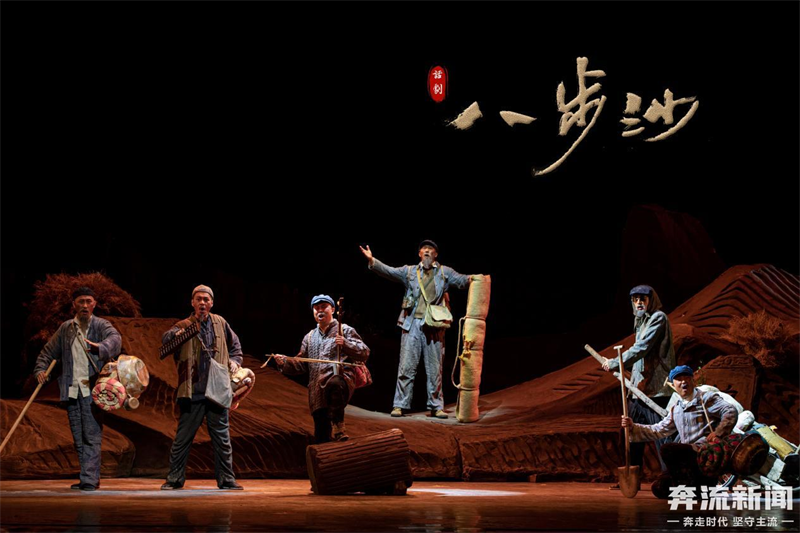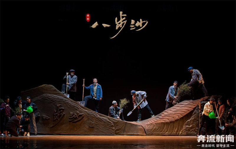 話劇《八步沙》根據(jù)“時代楷?!备拭C古浪八步沙“六老漢”三代人治沙造林先進(jìn)群體真實(shí)事跡創(chuàng)作,以舞臺藝術(shù)生動再現(xiàn)了八步沙“六老漢”治沙造林的感人事跡。該劇充分發(fā)揮話劇藝術(shù)直面現(xiàn)實(shí)生活書寫時代風(fēng)采的優(yōu)勢,生動表現(xiàn)了“六老漢”創(chuàng)造幸福人生,追尋探究人生價值的真諦。2022年,該劇先后入選第十三屆中國藝術(shù)節(jié)參演劇目和第十七屆“文華大獎”提名劇目。