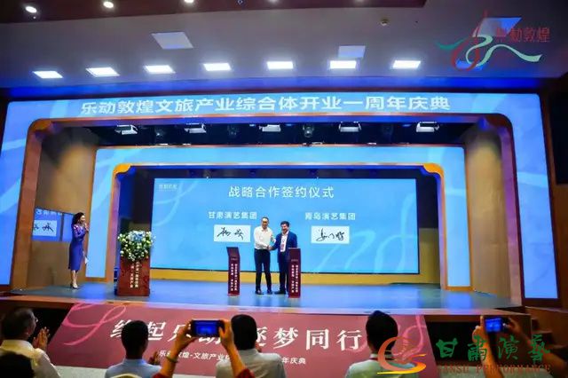 當(dāng)天下午,青島演藝集團(tuán)與甘肅演藝集團(tuán)進(jìn)行戰(zhàn)略簽約,甘肅衛(wèi)視、北京番知科技有限公司與動(dòng)敦煌(敦煌)文化旅游產(chǎn)業(yè)發(fā)展有限公司進(jìn)行戰(zhàn)略簽約,以此加強(qiáng)文旅行業(yè)各領(lǐng)域?qū)勇?lián)動(dòng),共同助推文旅行業(yè)高質(zhì)量發(fā)展。