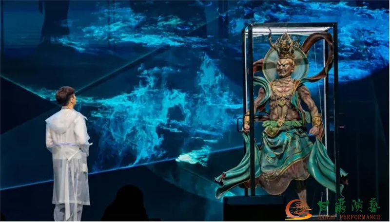 “我覺得這種演出方式很有趣,讓我忍不住想要知道下一幕會(huì)有什么驚喜。”一位來自上海的游客,在觀看完《樂動(dòng)敦煌》后說道。這樣獨(dú)特的體驗(yàn)感,歸功于《樂動(dòng)敦煌》在“活態(tài)”展現(xiàn)敦煌文化時(shí)的獨(dú)到方式。游走式、沉浸式的觀演,打破了傳統(tǒng)舞臺(tái)劇目演員與觀眾之間的隔閡。冰屏、飛紗等科技手段,使得演出“看點(diǎn)”滿滿,“爆點(diǎn)”不斷。讓觀眾在虛實(shí)之間,感受表演者、音樂、光影之間的交匯沉浸,收獲心靈的震撼。