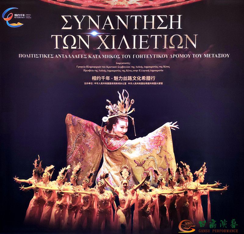 甘肅演藝集團(tuán)歌舞劇院的藝術(shù)家們用多種形式為希臘民眾獻(xiàn)上精彩的演出,演出分為序篇《東方之光》、上篇《絲路之旅》、中篇《絲路明珠》、下篇《絲路風(fēng)采》和尾聲《再約千年》。在演出尾聲,中國藝術(shù)家與希臘民眾一起在劇場里載歌載舞,將全場氣氛推向高潮。