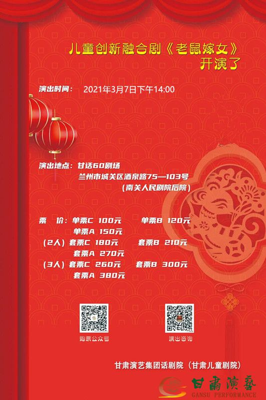 甘肅演藝集團(tuán)話劇院(甘肅兒童劇院)創(chuàng)排的兒童創(chuàng)新融合劇《老鼠嫁女》綻放舞臺(tái),鼠來(lái)寶、太陽(yáng)、烏云、風(fēng)、墻,各路選手齊上陣,都想爭(zhēng)做鼠大王的女婿,看看鼠大王最終更“鼠”意誰(shuí)?本周六、周日我們一起揭曉謎底!
